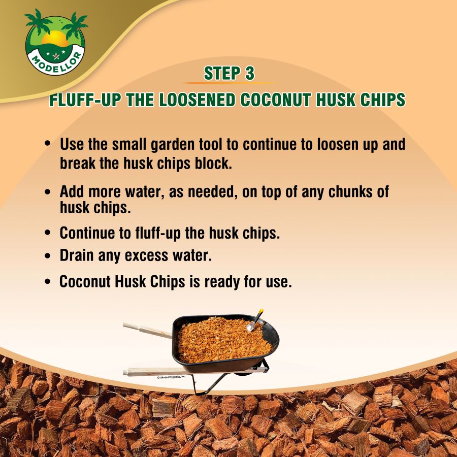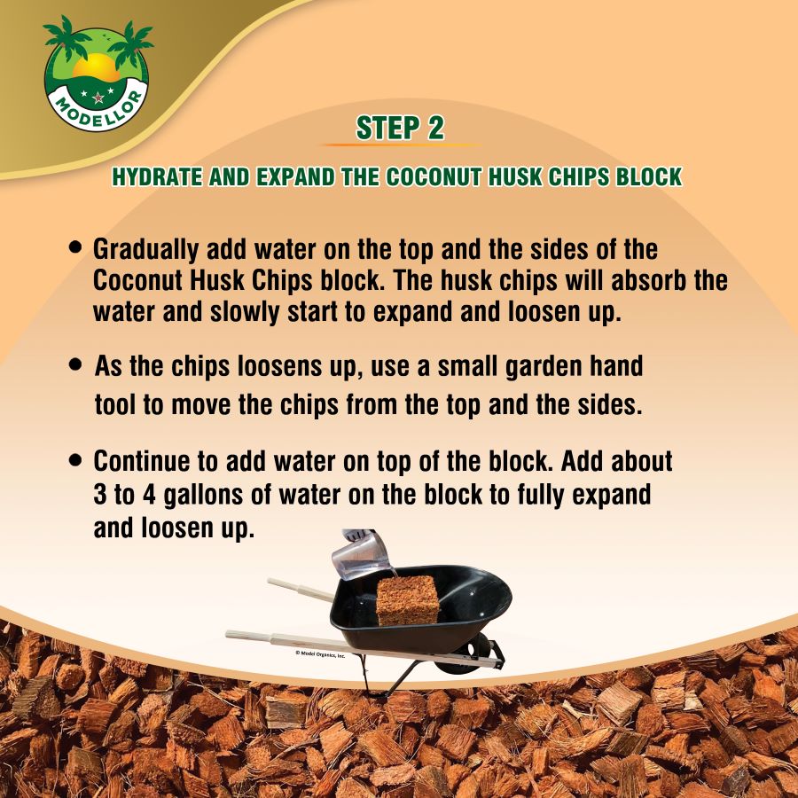 There are 3 steps to Hydrate the Coco Husk Chips as listed below.